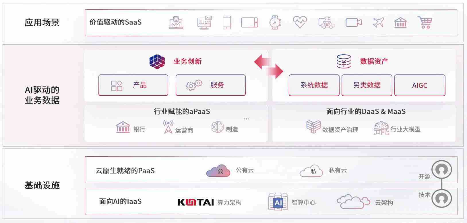 数字时代,,围绕企业数字化转型的关键要素,,,808钱包数码开创性的提出数云融合战略和技术体系框架,,着力在云原生、、、、数字原生、、AI原生和信创产业上架构产品和服务能力,,,,为处在不同数字化转型阶段的快消零售、、、汽车、、、金融、、、、医疗、、政企、、教育、、运营商等行业客户提供泛在的敏捷IT能力和融合的数据驱动能力,,,构建跨界融合创新的数字业务场景和新业务模式,,助力企业级客户建立面向未来的核心能力和竞争优势,,,全面推动社会的数字化、、智能化转型升级。。。