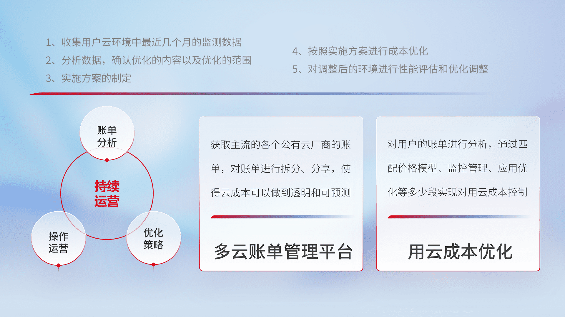 监控业务系统资源开销,,,对资源的消耗精确计量,,,实现费用的透明化管理,,,不断提升资源使用率,,,调整资源购买方式,,,,降低资源费用成本,,,用云成本可预测、、用云费用可优化,,,云资源配额有据可依。。。