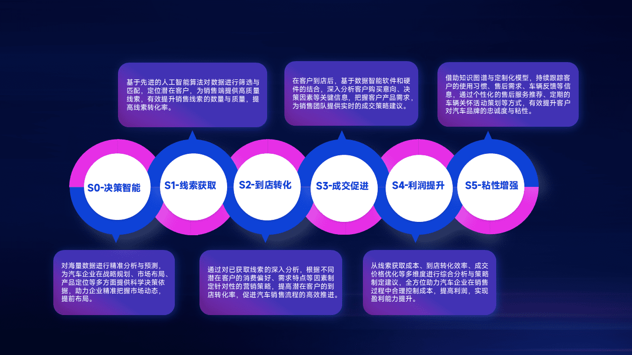 通过拓宽潜在客户来源、、、优化线索分配并提高到店转化率,,,以增强销售效率。。。同时,,利用线索数据不断优化分析模型,,,,有效提升转化率,,,扩大营销影响力。。。